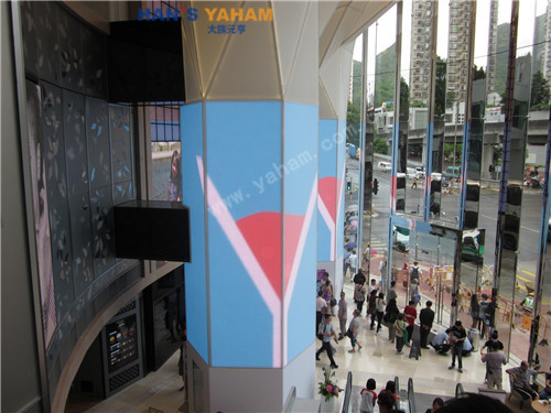 從V city 正門(mén)前就可以看到四根別致的立柱,LED顯示屏覆蓋柱子六個(gè)面,形成一個(gè)完整畫(huà)面的六面形顯示屏,像素間距12mm,采用同步視頻控制方式,保證播放畫(huà)面清晰流暢。采用磁鐵前維護(hù)方式,維護(hù)時(shí)把LED顯示屏模組或單元板取下來(lái),就可以對(duì)屏體進(jìn)行維護(hù)。