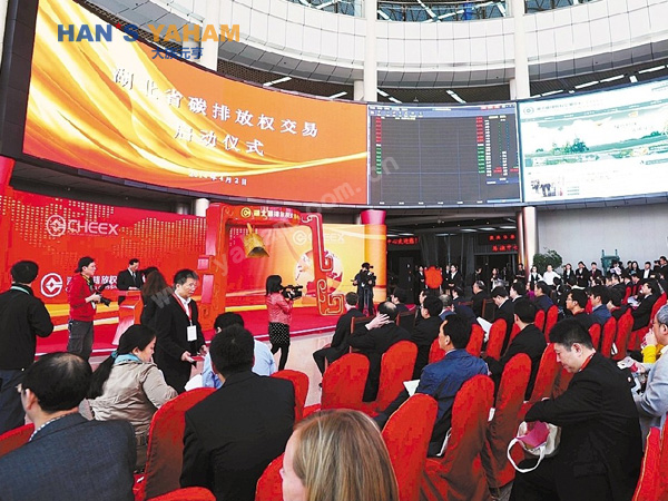 (光谷資本大廈4月2日碳排放正式掛牌交易儀式上顯示屏動(dòng)態(tài))