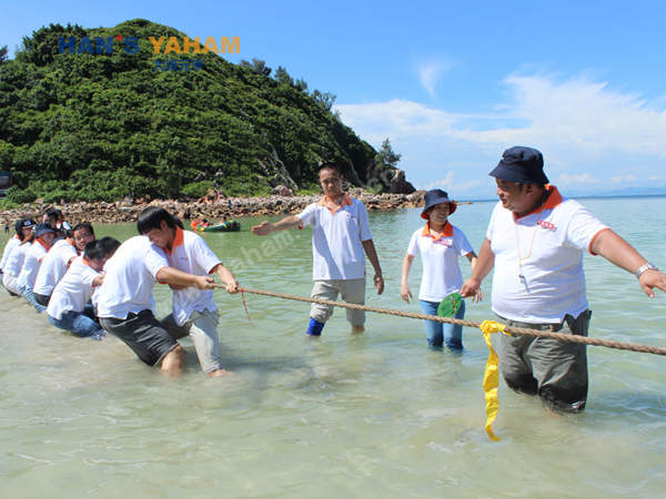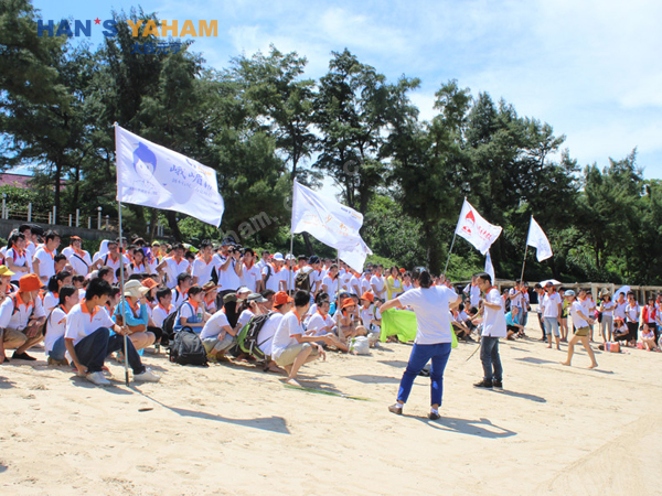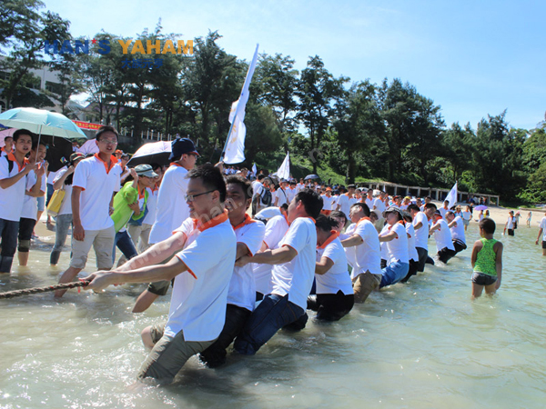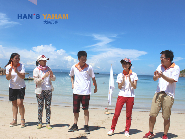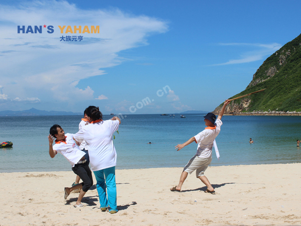 整齊的隊伍、統(tǒng)一的服裝、響亮的口號......我們的抵達(dá)打破了海島原有的平靜,海浪似乎因?yàn)槲覀兊牡絹碜兊没顫娖饋砹耍布尤肓宋覀兊年犖?,為七大門派武林爭霸加油鼓勵。驕陽似火也抵擋不住同事們火辣辣的熱情,七大門派武林爭霸箭在弦上,一觸即發(fā)。
