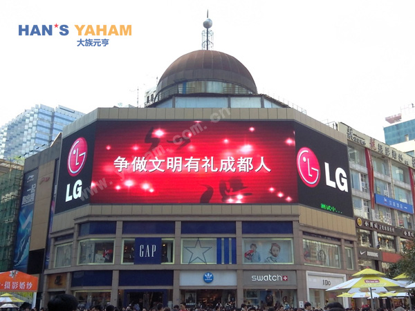 該項(xiàng)目LED顯示屏的高對比度、高刷新度決定了其顯示畫面的完美流暢,是元亨光電戶外轉(zhuǎn)角屏的又一力作。該顯示屏與2011年的立柱式LED櫥窗屏相呼應(yīng),構(gòu)成了成都春熙路的戶外新媒體廣告體系,是成都這一座耐人尋味的城市中獨(dú)特的風(fēng)景。