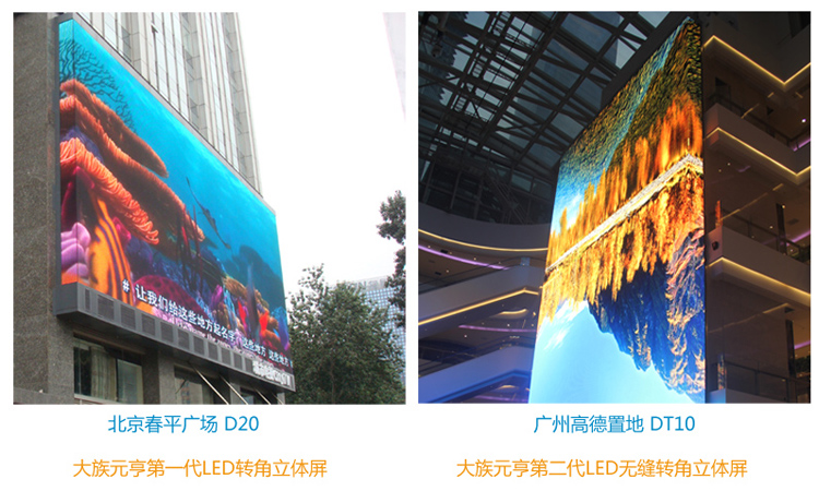 與元亨光電第一代LED轉(zhuǎn)角屏相比,第二代LED轉(zhuǎn)角屏成功實(shí)現(xiàn)了無縫拼接,畫質(zhì)顯示效果更加完美。90度無縫轉(zhuǎn)角是行業(yè)內(nèi)的重大難題,元亨光電首創(chuàng)轉(zhuǎn)角模組專利技術(shù),有效地消除LED顯示屏轉(zhuǎn)角處的“黑線”,實(shí)現(xiàn)轉(zhuǎn)角屏畫面顯示的連貫自然。