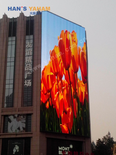 該LED大屏幕大氣震撼的外表下蘊(yùn)含著元亨光電研發(fā)團(tuán)隊(duì)精彩絕倫的創(chuàng)意設(shè)計(jì)。大屏幕采用我司轉(zhuǎn)角模組專利技術(shù),立體效果奪人眼球,創(chuàng)意新穎的表現(xiàn)形式助力提高高德置地的品牌知名度。屏幕左右兩端轉(zhuǎn)角設(shè)計(jì),巧妙地將平面效果塑造成三面立體效果,有效拓寬屏幕視野范圍,擴(kuò)大受眾覆蓋面,提高客戶廣告價(jià)值!
