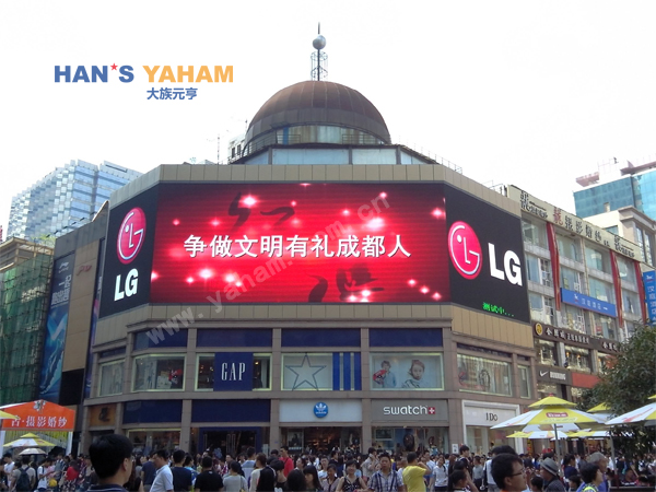 專利技術(shù)的使用可以使LED轉(zhuǎn)角屏更好地與建筑本身融于一體,提高LED顯示屏的整體美觀度,吸引眼球。安裝在地標(biāo)建筑上的LED顯示屏,在不影響建筑物整體美觀的情況下,可通過轉(zhuǎn)角區(qū)域平整的弧形過渡,實(shí)現(xiàn)與建筑物的完美融合。