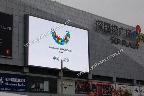 LED顯示屏作為先進(jìn)的大型的顯示媒體,早已成為各廣告公司的新寵,而各商業(yè)地產(chǎn)商更希望通過這種先進(jìn)的顯示設(shè)備來向消費(fèi)者傳播商業(yè)信息,以此來吸引顧客。近日,一塊由元亨光電出品的戶外LED顯示屏在深圳深國投廣場(chǎng)亮相,此屏顯示面積達(dá)145平米,整屏近60萬像素,有很強(qiáng)的廣告表現(xiàn)力。