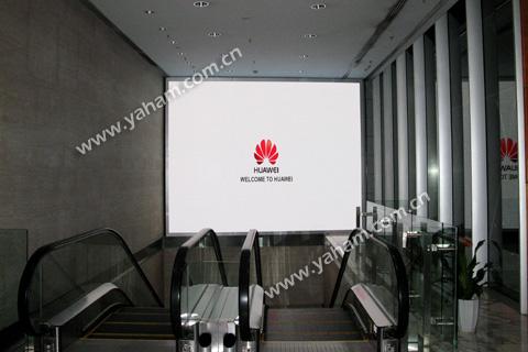 華為展廳LED顯示屏項(xiàng)目位于深圳華為坂田基地F1展廳,是元亨光電在中國(guó)內(nèi)地承接的第一個(gè)像素密度為3.5mm的顯示屏項(xiàng)目,像素密度達(dá)到81633點(diǎn)/平米,該顯示屏由99個(gè)單元箱體組成,顯示面積達(dá)到19平米,顯示分辨率達(dá)153萬(wàn)像素,可顯示1080P的高清視頻,最近可視距離縮小為1米之內(nèi)。