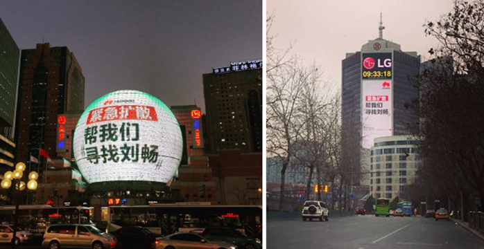 除了線上之外,北京、上海多地商圈更是出現(xiàn)了“緊急擴散,幫我們尋找劉暢”的巨幅海報及各種形式的戶外廣告,一時之間引發(fā)全民搜索。