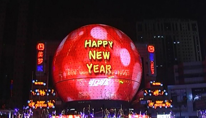 其中最閃耀的球體顯示屏是世界首例大型玻璃球型建筑,位于上海美羅城,2013年由元亨光電建成,是內(nèi)安裝廣告柵屏,總顯示尺寸約為2700㎡,最寬處達(dá)1080像素點,最高處為216像素點,為了保證畫面的連續(xù)性和完整性,球體南北極燈條密度做了非均勻處理,所有燈條橫豎交錯分布,通過抽點技術(shù)、嚴(yán)格校正以避免色彩的偏差,致力呈現(xiàn)最靈動的畫面效果。自建成以來,球體承接的廣告每每出現(xiàn)令人驚艷的效果,深受廣告商好評。
