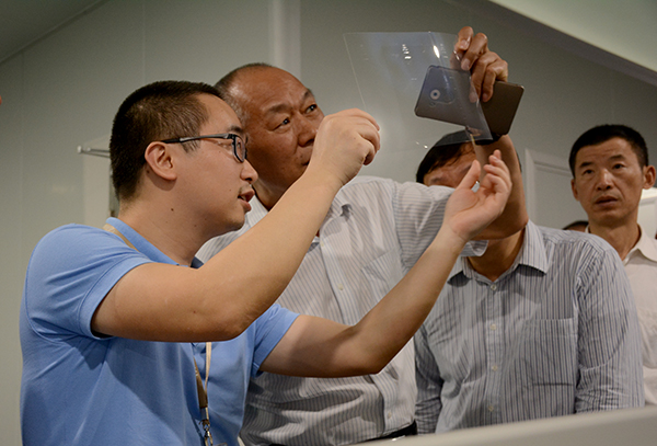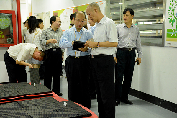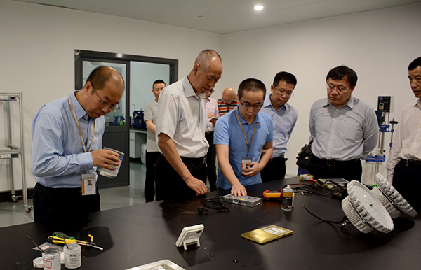 蘇國(guó)平主任一行考察組對(duì)元亨光電照明事業(yè)部、交通事業(yè)部以及顯示屏的生產(chǎn)、研發(fā)、銷售進(jìn)行了全面的考察??偛猛跽济骷皥?zhí)行董事張新慶均對(duì)各個(gè)環(huán)節(jié)進(jìn)行了詳細(xì)的介紹和解答。