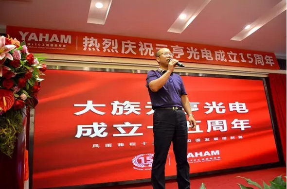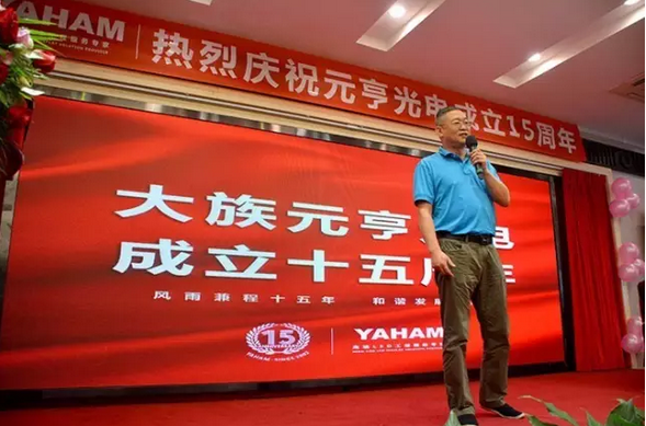 8月20日,元亨光電迎來了15歲的生日,為了感謝新老客戶、供應商的支持和全體員工的辛勤付出,元亨光電在銀湖酒店舉行了15周年慶典,慶典由公司常務副總焦偉棋主持。公司副董事長張新慶、公司副董事長鄺野、公司總裁王占明及客戶代表、供應商代表、10年員工代表均發(fā)表致辭,各自分享回顧了在元亨光電的切身體會和成長歷程。