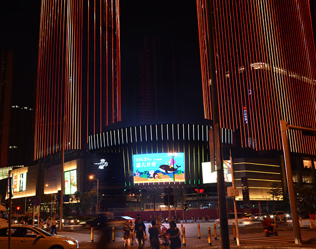 當(dāng)朗朗秋月斜掛天幕的時候,撲面而來的是建筑上層層鋪開的璀璨華燈,遠(yuǎn)遠(yuǎn)望去,燈光如水波般上下來回蕩漾開來,兩側(cè)各色顯示屏交相呼應(yīng),仿佛是要給深圳的夜晚拉上一層神秘的面紗,開始向途徑此處的你訴說城市的故事。