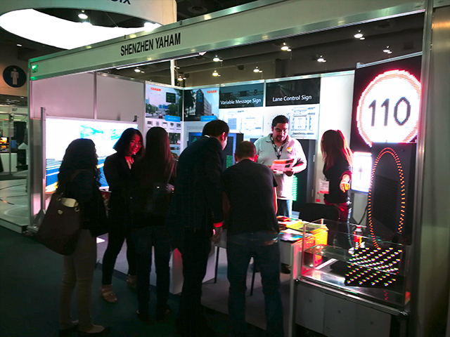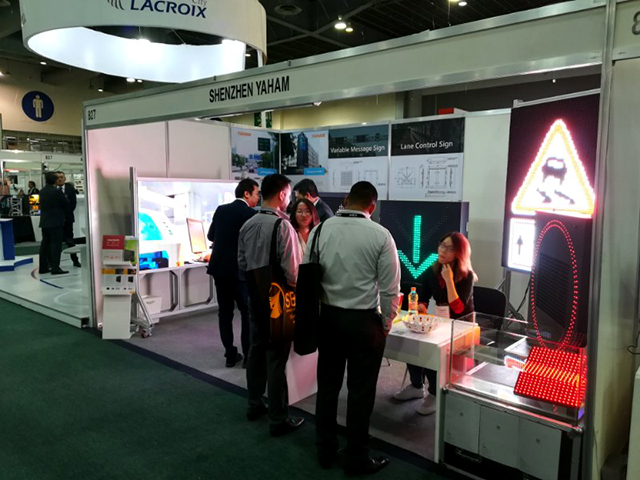 本次展會元亨光電攜帶的情報板OT20顯示屏、限速標志、控制車道標志、3.91mm顯示屏、YS顯示屏等產(chǎn)品,可廣泛應(yīng)用于高速可變信息標志、城市可變信息標志、單立柱限速標志、地鐵站內(nèi)情報板、指示牌等領(lǐng)域,結(jié)合運用了元亨光電最新的研發(fā)成果,現(xiàn)場進行點亮演示,效果俱佳,引來眾多交通部項目、政策決策人及技術(shù)顧問、聯(lián)邦政府項目、政策決策人及技術(shù)顧問、公共交通項目部負責(zé)人(地鐵、巴士等)等領(lǐng)域觀眾駐足咨詢了解,現(xiàn)場火熱。