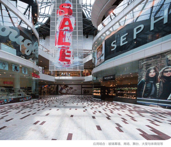 LED透明屏廣泛應(yīng)用于戶內(nèi)櫥窗玻璃、商場(chǎng)、玻璃幕墻等場(chǎng)景。