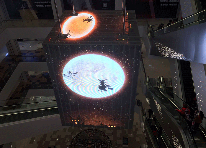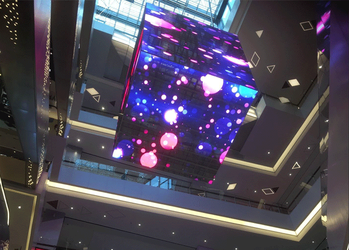 項目簡介:位于北京合景魔方大廈的透明屏是一塊形狀為六面體魔方造型的異形屏,由于大廈的開業(yè)時間早已定下,因此交期問題成了最大的難題。為此,元亨光電工程人員在動工前就嚴格制定了工作計劃,日夜趕工,確保項目按時完工。整屏位于商場中央,因此還特別做了升降設(shè)計,以便后期維修更換。