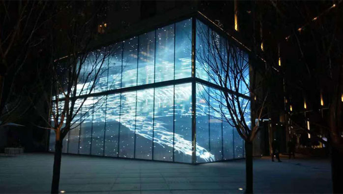 2018年,元亨光電在杭州良渚未來(lái)之光打造的總面積為270.45㎡、由34種不同尺寸的箱體構(gòu)成的透明屏完美解決這三大難題:完全貼墻安裝避免破壞幕墻外觀及結(jié)構(gòu),透明屏70%的通透性確保玻璃幕墻的正常采光,也成為了未來(lái)城的一道獨(dú)特的風(fēng)景線。
