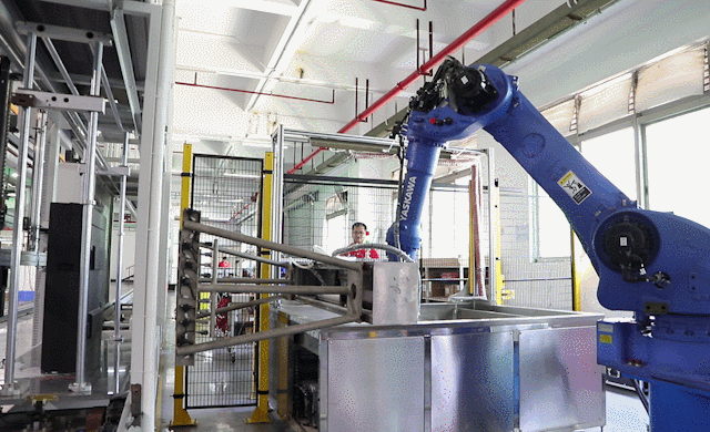 眾所周知,戶外LED箱體都要求做防水測(cè)試,需要在顯示屏的表面淋水,經(jīng)過(guò)多項(xiàng)測(cè)試后,確保防護(hù)等級(jí)要達(dá)到IP65,實(shí)現(xiàn)真正意義上的防水,才最終出貨交付到客戶手中。傳統(tǒng)的淋水測(cè)試都需要人工搬運(yùn)、淋水,效率極為低下。元亨泡水機(jī)器手用機(jī)器代替人工,機(jī)器精準(zhǔn)抓住箱體,平穩(wěn)將箱體運(yùn)送到水池進(jìn)行泡水測(cè)試,整個(gè)運(yùn)行過(guò)程只需短短幾十秒,不僅節(jié)省了勞動(dòng)力,還極大地提高了工作效率。