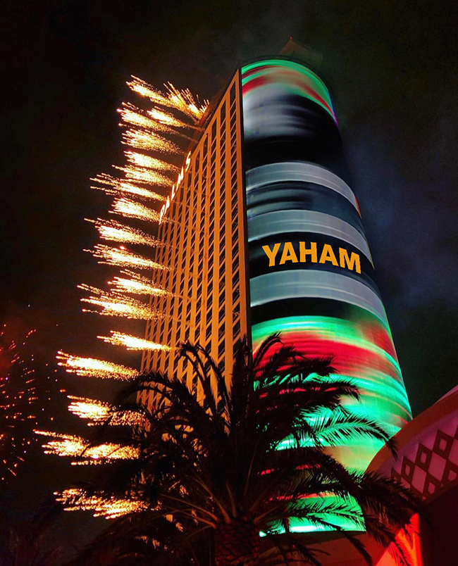 這塊覆蓋酒店整個(gè)曲面外墻的LED顯示屏,由元亨光電LD25戶(hù)外網(wǎng)格屏打造而成,整屏面積達(dá)1987.2平米。對(duì)于這座在沙漠中拔地而起的不夜城而言,LED顯示屏安裝最需要考慮的是顯示屏的散熱性能。為此,元亨在產(chǎn)品設(shè)計(jì)生產(chǎn)時(shí)特意選用日亞336高亮燈,這款燈珠不僅達(dá)到7000nits 的亮度要求,而且功耗低,能有效控制屏體熱量。箱體內(nèi)置的散熱片能加快屏體散熱,確保屏體在高溫環(huán)境下正常運(yùn)行。