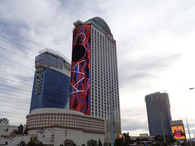 在這座活色生香的世界級(jí)熱門(mén)旅游城市里,令人向往的不僅僅是隨處可見(jiàn)的賭場(chǎng),還有這里最繁華的主干道——長(zhǎng)街(拉斯維加斯大道)兩旁的世界著名豪華酒店群落。如果說(shuō)位于拉斯維加斯心臟地帶的凱撒宮是一座充滿(mǎn)古羅馬風(fēng)情的奇幻宮殿,那么1.5公里以外的Palms , 則宛如一位時(shí)刻散發(fā)著典雅氣質(zhì)的貴婦,在夜幕中,在LED顯示屏巨幕的映襯下,燈影閃爍、流光溢彩的Palms比白天更具魅力。
