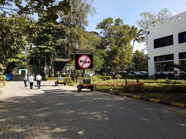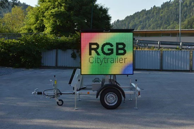移動式的拖車屏適用于道路和橋梁建設(shè)施工現(xiàn)場,火警現(xiàn)場及停車場等地的交通信息播報系統(tǒng),因其便捷的移動性能,LED 交通情報板不僅可以臨時向駕駛?cè)藛T提供有效的交通信息,提醒駕駛?cè)藛T注意車速、天氣等,減少交通事故的發(fā)生;還可以顯示指揮調(diào)度部門的指令、通告以及相關(guān)的道路信息,從而有效地對交通進(jìn)行誘導(dǎo),提高道路的交通運輸能力。